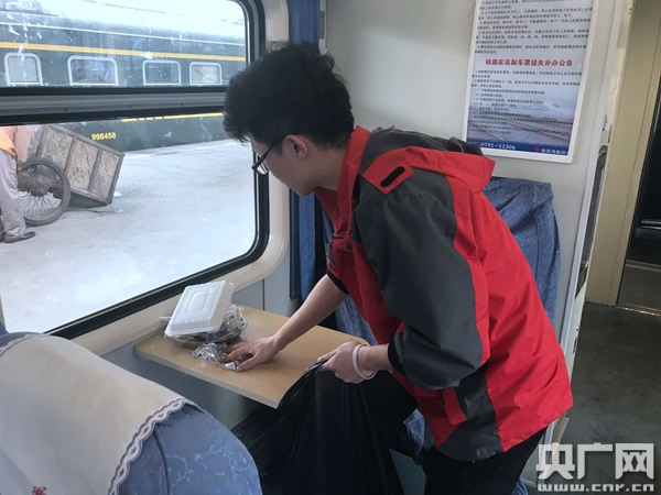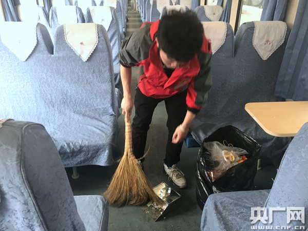 雖然只是臨時(shí)擔(dān)任列車員,但是王銘的工作與正式的列車員并沒(méi)有什么不同。“就我們列車員而言,平時(shí)主要做的日常工作就是車廂的衛(wèi)生清潔工作,還有就是對(duì)于旅客的突發(fā)情況,我們也要做出積極的回應(yīng)!