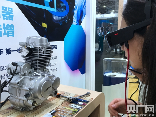 在亮風(fēng)臺(tái)公司的展臺(tái)前,一個(gè)摩托車發(fā)動(dòng)機(jī)格外引人注目,F(xiàn)場工作人員任崇斌介紹,維修人員工作時(shí)戴上亮風(fēng)臺(tái)AR眼鏡,摩托車發(fā)動(dòng)機(jī)的產(chǎn)品信息、零部件結(jié)構(gòu)就能清晰地疊加在現(xiàn)實(shí)場景之上!拔覀兛梢栽诂F(xiàn)實(shí)中疊加顯示它的內(nèi)部結(jié)構(gòu)和工作原理,可以選擇各個(gè)模塊讓它告訴我們每個(gè)零部件的名字。如果在維修的過程中遇到了問題,可以申請(qǐng)遠(yuǎn)程協(xié)助。這些全都是戴著眼鏡在操作,可以達(dá)到解放雙手的目的。”