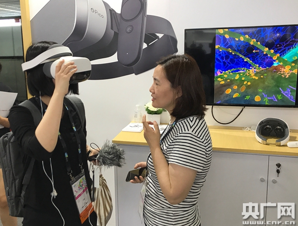 另外,在教育領(lǐng)域,VR設(shè)備也開始投入應(yīng)用。在北京小鳥看看科技有限公司的展區(qū),記者體驗(yàn)了一款頭戴式VR一體機(jī),這款設(shè)備可以結(jié)合生物學(xué)教學(xué)方案,呈現(xiàn)細(xì)菌的形態(tài)并講解相關(guān)知識(shí)。小鳥看看科技有限公司副總裁祖昆侖介紹,VR設(shè)備提升了教學(xué)手段的豐富性和趣味性。傳統(tǒng)的教學(xué)可能只能展示圖片,但在VR設(shè)備里,學(xué)生可以非常直觀地看到細(xì)菌的形狀,在看到細(xì)菌同時(shí),它還會(huì)告訴學(xué)生該細(xì)菌的作用。祖昆侖說,除了生物方面的VR產(chǎn)品,他們還做過帶有化學(xué)、地理、英語等學(xué)科內(nèi)容的VR產(chǎn)品。