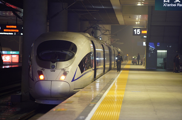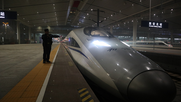 凌晨G4856次列車即將從西安北站出發(fā)(尤艇 攝 中鐵西安局供圖)