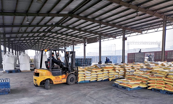 化肥等待裝車(哈爾濱局供圖)