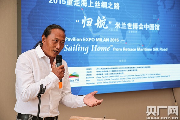 央廣網(wǎng)米蘭8月19日消息(記者盧靖)“2015重走海上絲綢之路”歸航中國館活動昨日在米蘭世博會中國館舉行。著名航海家翟墨率領船隊,于4月20日從中國福建平潭啟航,穿越南海、印度洋、阿拉伯海、亞丁灣、蘇伊士運河、地中海等海域,途經(jīng)新加坡、埃及、馬耳他、希臘等國家,成功抵達終點站意大利。