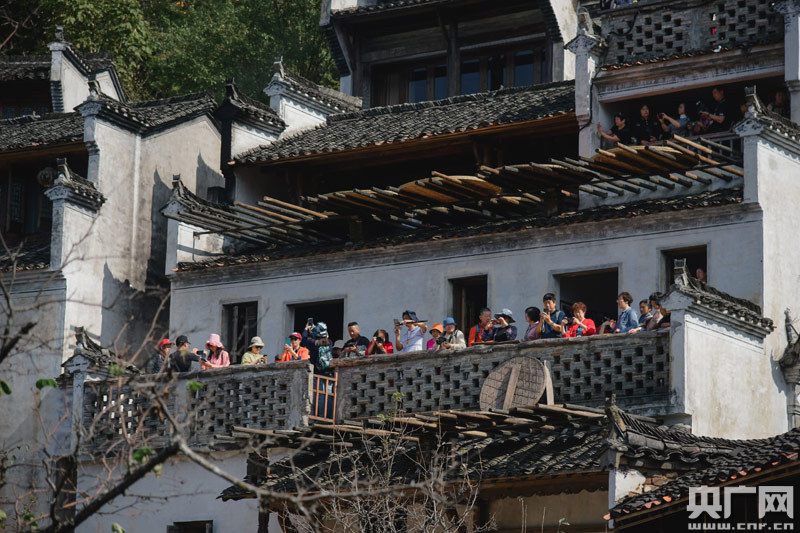 金秋十月,篁嶺的秋色已經(jīng)十分濃烈,在這個近六百年歷史的徽式村落上,曬滿了色彩斑斕的曬盤,層層疊疊,十分壯觀。隨著入秋時間漸長,村落的美國紅楓葉子開始轉紅,粉墻黛瓦在色彩斑斕的葉子掩映下,如中國山水畫般詩情畫意。秋天的陽光里,這個建在懸崖上的美麗山村,將鄉(xiāng)村旅游的風采徐徐展開,帶給國外朋友最美的小鎮(zhèn)風光和民俗文化。