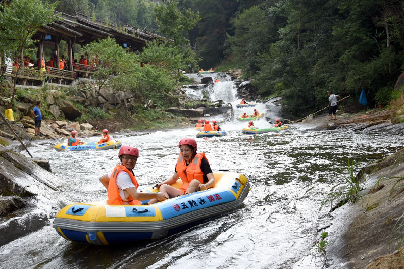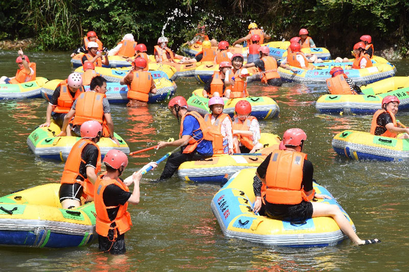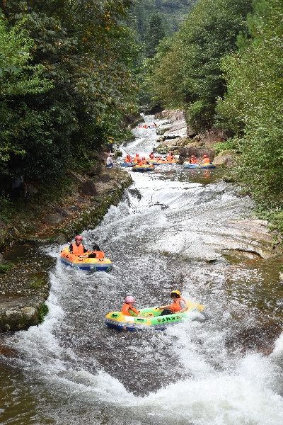 近日,江西多地持續(xù)高溫,位于婺源縣的五龍?jiān)礃O限漂流景區(qū)迎來(lái)旅游高峰,眾多游客前來(lái)體驗(yàn)親水漂流項(xiàng)目,樂(lè)享夏日清涼。(通訊員 詹衛(wèi)華)