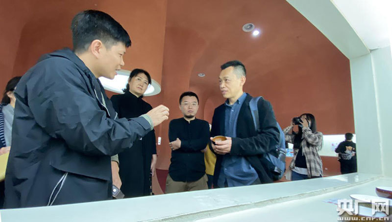 江西省美術(shù)館館長、江西畫院院長雷子人等驗收專家組成員在了解項目實施情況(央廣網(wǎng)發(fā) 通訊員提供)