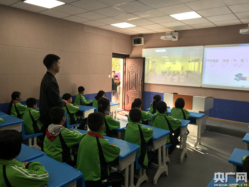 石人鄉(xiāng)小學(xué)與上饒市重點(diǎn)小學(xué)同步上音樂課(央廣網(wǎng)發(fā) 于子敬攝)