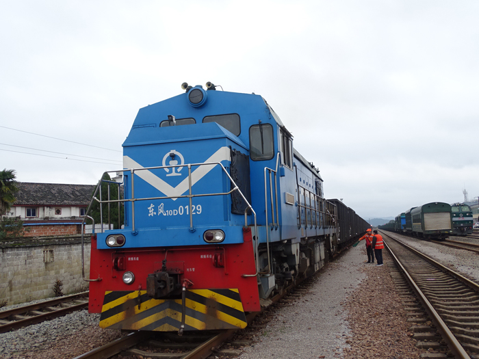 黃金埠電廠調(diào)機將整列電媒從畫橋站運往廠專線 央廣網(wǎng)發(fā) 黃定坤攝