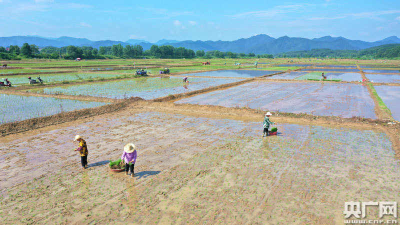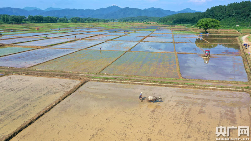 6月11日,吉水縣烏江鎮(zhèn)楓坪村千畝稻油輪作基地一片忙綠,油菜收割后,村民正抓緊晴好天氣耕地、施肥、栽種中稻。