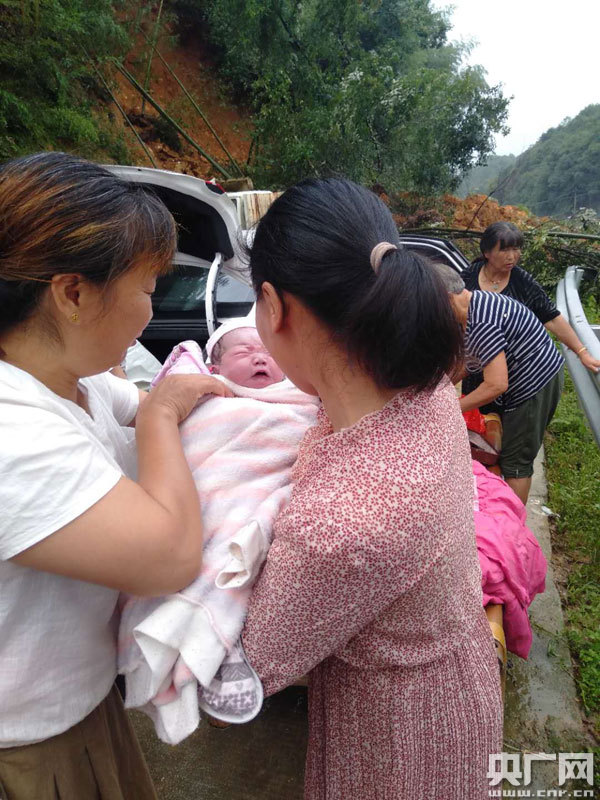 接到報警后,該鎮(zhèn)派出所民警、消防員和鎮(zhèn)村干部立即趕往現(xiàn)場展開救援。因通往現(xiàn)場多處道路被洪水和滑坡山體淹沒,救護(hù)車無法抵達(dá)現(xiàn)場,該鎮(zhèn)立即請來一名鄉(xiāng)醫(yī)幫忙生產(chǎn),凌晨6時13分,孕婦順利在自家車內(nèi)產(chǎn)下一子。