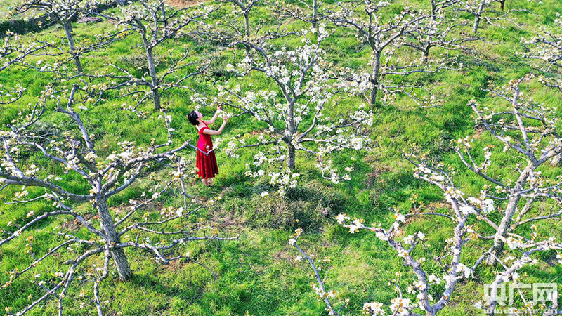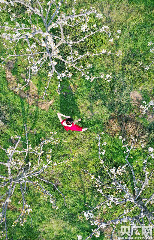 陽(yáng)春三月梨花開(kāi),微風(fēng)徐徐、花海爛漫。3月20日,在江西省吉安市吉水縣的低坪村“花果世界”,這里的百畝梨花競(jìng)相綻放,一位舞蹈愛(ài)好者在梨花林里,翩翩起舞,猶如春天里的芭蕾,紅裙、絢爛的花海與綠草藍(lán)天相互映襯,組成一幅寧?kù)o恬淡的田園畫卷。