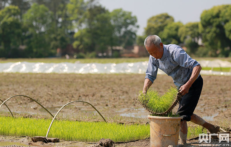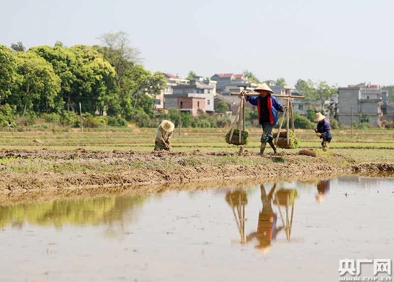 4月9日,江西省吉安市吉水縣丁江鎮(zhèn)塘邊村高標準農田建設區(qū),村民正在起收秧苗