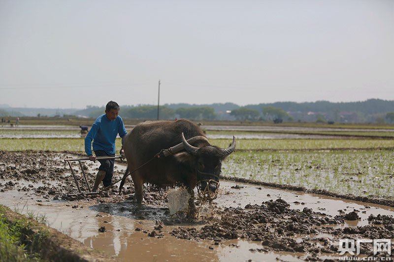 4月9日,江西省吉安市吉水縣丁江鎮(zhèn)塘邊村高標準農田建設區(qū),村民正在耕田