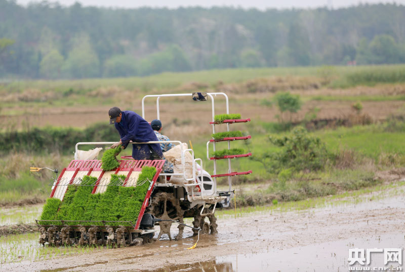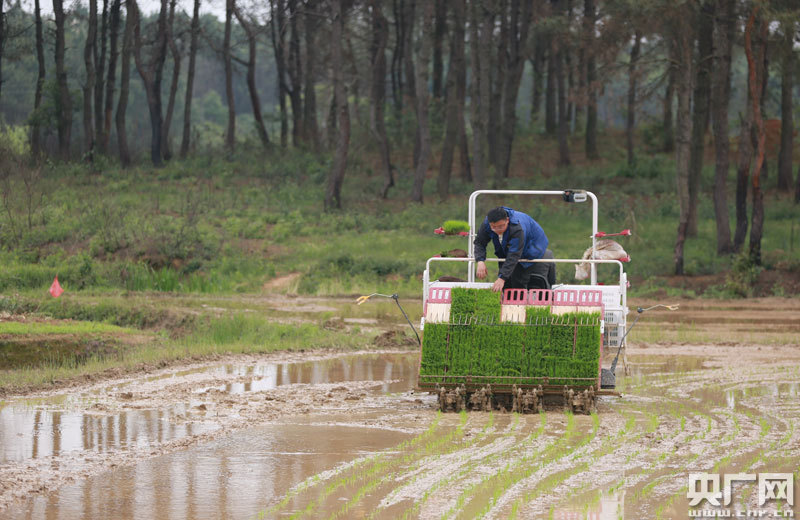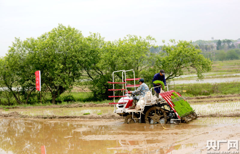 4月14日,江西省吉安市吉水縣尚賢鄉(xiāng)田螺邊村農(nóng)機(jī)來(lái)回穿梭,該縣中波農(nóng)機(jī)服務(wù)隊(duì)的操作手正駕駛著插秧機(jī)進(jìn)行春播。