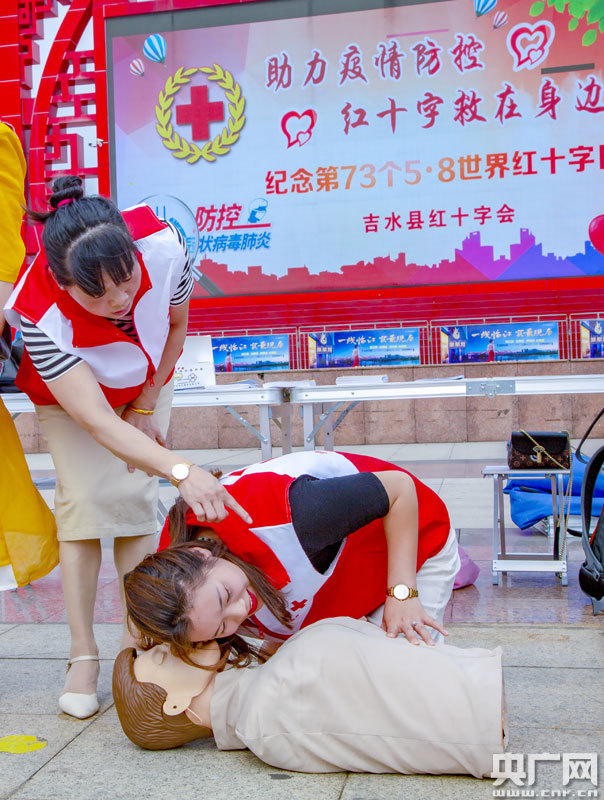 央廣網(wǎng)吉水5月8日消息(記者王一凡 通訊員涂藝椹 胡曦)為紀念第73個“世界紅十字日”和我國第12個“全國防災(zāi)減災(zāi)日”,弘揚“人道、博愛、奉獻”的紅十字精神,5月8日上午,吉水縣紅十字會在縣文化公園組織開展了“助力疫情防控,紅十字‘救’在身邊”應(yīng)急救護知識培訓(xùn)活動,為減少人員聚集,此次培訓(xùn)采取了現(xiàn)場教學(xué)和視頻教學(xué)兩種形式,縣紅十字會志愿者20余人參與了現(xiàn)場培訓(xùn)。