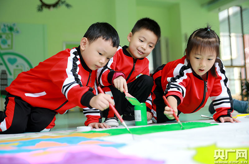 小朋友們手繪美麗祖國山河(央廣網(wǎng)發(fā) 通訊員廖敏 攝)