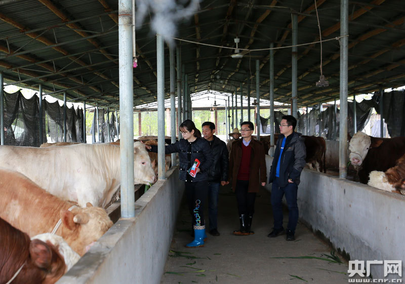 劉旸瑒(左)和工作隊(duì)隊(duì)員一起商討擴(kuò)大肉牛養(yǎng)殖規(guī)模事宜
