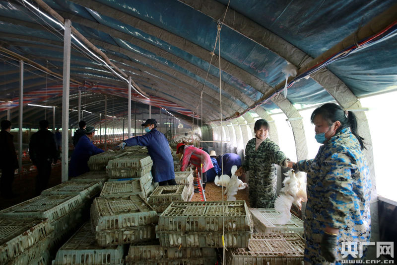 吉水縣八都鎮(zhèn)東坊村,村民們正在將商品雞裝籠出售