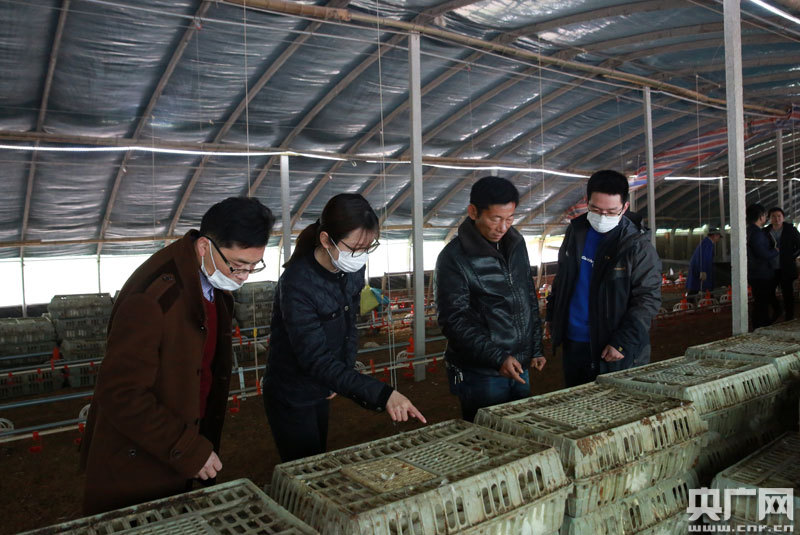 劉旸瑒和工作隊(duì)隊(duì)員一起查看新的養(yǎng)雞大棚安裝情況