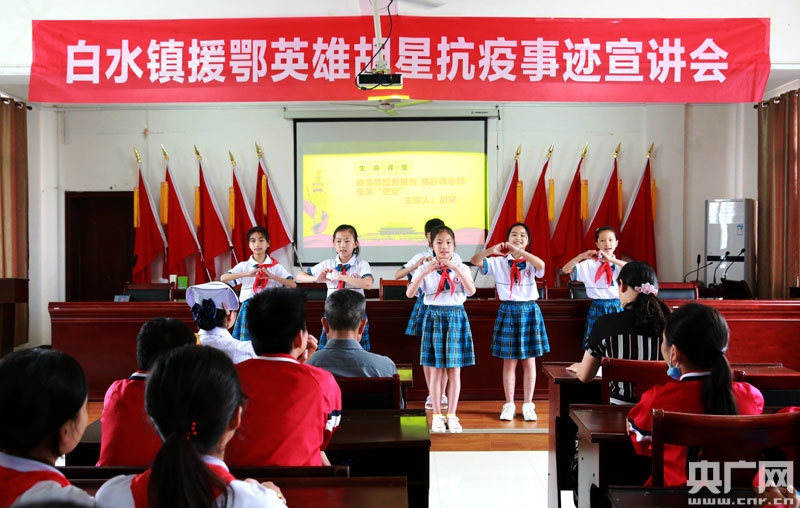 胡星在為白水鎮(zhèn)的中小學(xué)生講敘自己親身經(jīng)歷的武漢抗疫故事