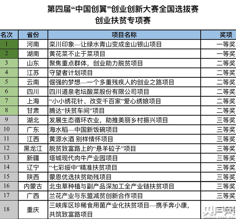第四屆“中國(guó)創(chuàng)翼”創(chuàng)業(yè)創(chuàng)新大賽全國(guó)總決賽創(chuàng)業(yè)扶貧專項(xiàng)賽一、二、三等獎(jiǎng)