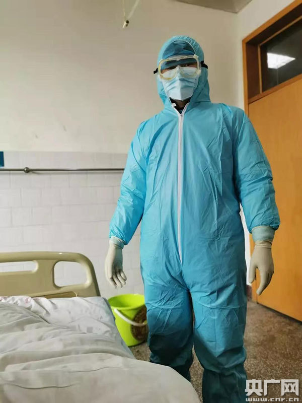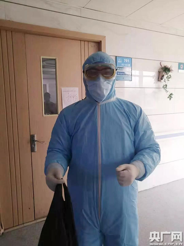 自疫情防治工作開展以來,黃偉和所有隔離病房的醫(yī)護人員一樣,對自己進行了自我隔離。家人牽掛不已,偷偷前往送飯及生活用品,黃偉發(fā)現(xiàn)后,立即大喊:“別靠近,放那里,我待會兒來拿!”