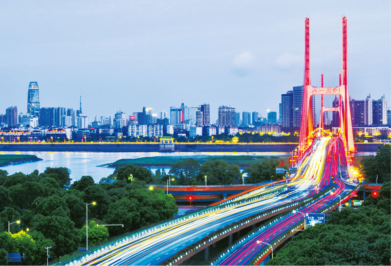 近年來,江西沿著習(xí)近平總書記指引的方向和道路砥礪前行,明確把推進(jìn)江西高質(zhì)量跨越式發(fā)展作為首要戰(zhàn)略,發(fā)展的成色更純、底色更亮、根基更牢。圖為2020年5月22日,江西省南昌市的地標(biāo)建筑——八一大橋。 人民圖片 徐國(guó)亮/攝