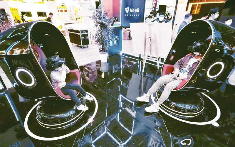 江西堅(jiān)持以供給側(cè)結(jié)構(gòu)性改革為主線,扭住創(chuàng)新這個(gè)“牛鼻子”,做強(qiáng)產(chǎn)業(yè)這個(gè)“主支撐”,在擴(kuò)量提質(zhì)中加快新舊動(dòng)能轉(zhuǎn)換。作為2020世界VR產(chǎn)業(yè)大會(huì)的一項(xiàng)重要內(nèi)容——2020VR/AR產(chǎn)品和應(yīng)用展覽會(huì)在南昌舉行。圖為2020年10月20日,江西南昌綠地國(guó)際博覽中心,市民在體驗(yàn)VR觀影。 人民圖片 徐錚/攝
