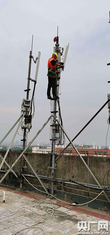 工作人員檢查5G網(wǎng)絡通訊基站(央廣網(wǎng)發(fā) 通訊員提供)