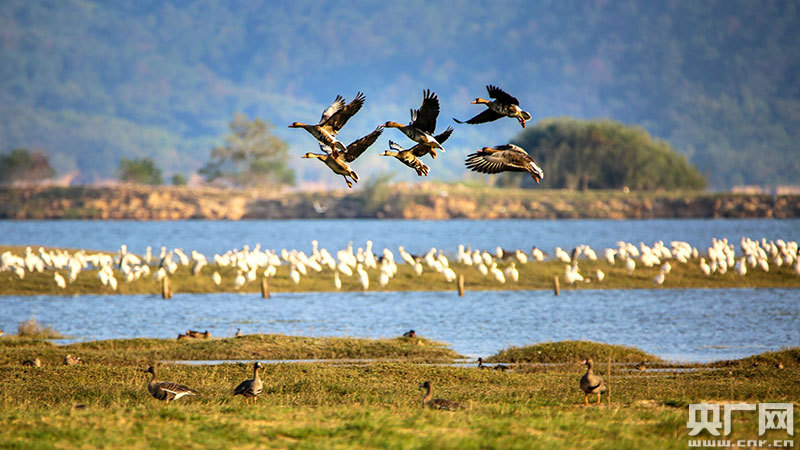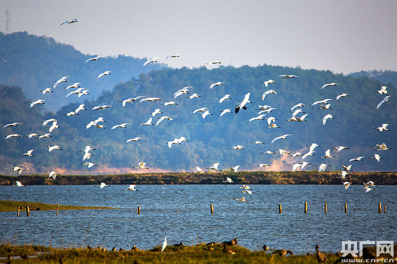 多種群越冬候鳥在鄱陽湖“起舞”(央廣網(wǎng)發(fā) 通訊員陳扶南 攝)