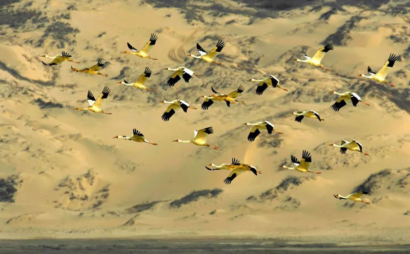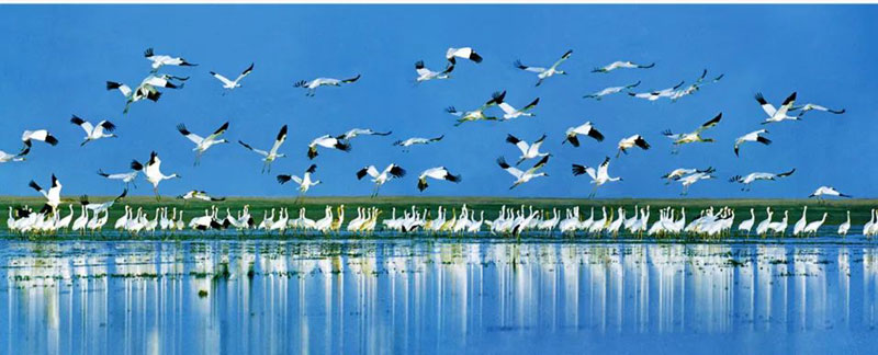 白鶴是一種極度瀕危物種,全球僅有4000只左右,有鳥類“活化石”之譽。白鶴在中國寓意延年益壽、吉祥如意,是江西“省鳥”,亦是江西生態(tài)環(huán)境優(yōu)良的代名詞。