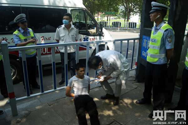 當(dāng)天下午13時許,南昌市交管局高新大隊(duì)一中隊(duì)組織警力在高新五路路口設(shè)卡查酒駕。當(dāng)一輛白色奇瑞小車從火炬大街由西往南右拐駛?cè)敫咝挛迓窌r,司機(jī)見到前方交警設(shè)卡檢查,立即停下,數(shù)秒鐘后車輛緊急調(diào)頭。此時,控制信號燈的上官文輝警官見此異常,立即通知前方設(shè)卡同事對該輛“問題車”進(jìn)行攔截檢查。由于前后都有車輛,男子在剮蹭了兩輛正常行駛車輛后,隨即棄車而逃。