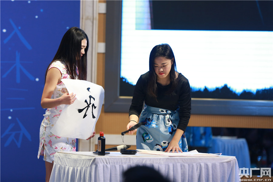 央廣網(wǎng)北京1月12日消息 昨日(11日),由方正手跡發(fā)起的“字體手護計劃”首屆年度分享交流會在北京大學(xué)舉行。教育部語言文字信息管理司司長田立新、著名書法家葉培貴、中央人民廣播電臺央廣網(wǎng)副總編輯伍剛、方正集團副總裁劉建應(yīng)邀出席,與現(xiàn)場大學(xué)生代表一起分享了有關(guān)漢字文化傳承的新形勢、新方法。圖為“字體守護大使”現(xiàn)場書寫“永”字。 -
