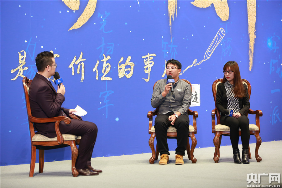 央廣網(wǎng)北京1月12日消息 昨日(11日),由方正手跡發(fā)起的“字體手護計劃”首屆年度分享交流會在北京大學(xué)舉行。教育部語言文字信息管理司司長田立新、著名書法家葉培貴、中央人民廣播電臺央廣網(wǎng)副總編輯伍剛、方正集團副總裁劉建應(yīng)邀出席,與現(xiàn)場大學(xué)生代表一起分享了有關(guān)漢字文化傳承的新形勢、新方法。圖為“字體手護大使”王少雄、王霖分享自己的手下故事。