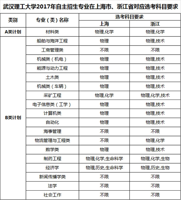 上海市、浙江省考生選考科目應和我校公布的2017年同類專業(yè)(類)選考科目范圍相同,具體選考科目要求見附件一。