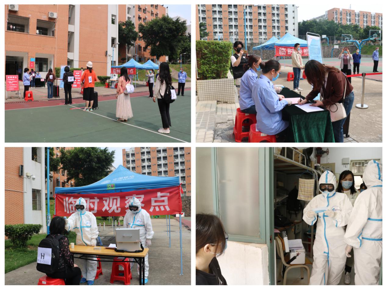 當(dāng)學(xué)生出現(xiàn)體溫偏高時(shí),工作人員將其轉(zhuǎn)移至臨時(shí)觀察點(diǎn),待其休息后,進(jìn)行二次體溫測量。若體溫測量無異常,學(xué)生可進(jìn)入宿舍;若體溫仍然偏高,則聯(lián)系衛(wèi)生所人員對其進(jìn)行留觀,做進(jìn)一步診斷;若體溫復(fù)測發(fā)現(xiàn)確實(shí)偏高,并伴隨有相關(guān)癥狀,則立即向疾控中心匯報(bào),并撥打120急救電話,由所在學(xué)院負(fù)責(zé)老師穿隔離服陪同前往醫(yī)院。