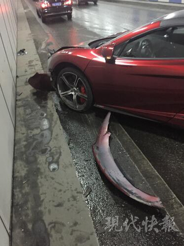 核心提示:最近南京發(fā)生多起豪車事故,昨天下午4點(diǎn)多,在鼓樓隧道內(nèi),一輛價(jià)值400來萬的邁凱倫跑車又撞上了路牙。
