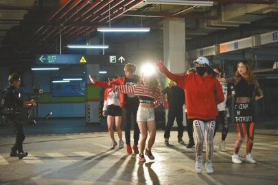 這幾天成都仍在經(jīng)歷寒潮,夜晚氣溫徘徊在2℃左右。晚上11點(diǎn),在春熙路的一個(gè)地下車庫,這群學(xué)員們穿著露臍裝、超短褲,冷得瑟瑟發(fā)抖。晚上,他們要錄制一個(gè)韓國音樂舞蹈視頻。音樂響起,他們好像立馬不冷了,邊跳舞,邊對(duì)著鏡頭做表情。