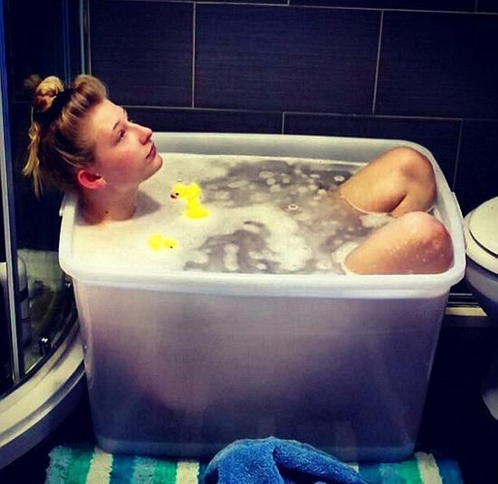 據(jù)英國(guó)《每日郵報(bào)》近日?qǐng)?bào)道,英國(guó)伯明翰大學(xué)學(xué)生露西萊思(Lucy Lyth)自創(chuàng)新式泡澡,露西把一個(gè)容積為145升的塑料箱當(dāng)作浴缸,體格嬌小的她表示那樣泡澡十分舒服。