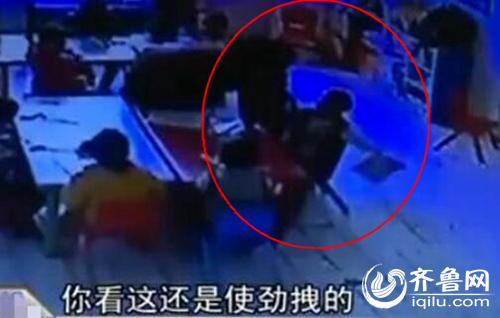 孩子上課時(shí)被老師拖拽。(紅圈中拿書者系孩子)