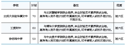 從公布的首批“1+3”培養(yǎng)模式改革試點(diǎn)學(xué)校及今年招生計(jì)劃中可以看到,今年“1+3”培養(yǎng)模式改革試點(diǎn)規(guī)模并不大,參與試點(diǎn)的學(xué)校分為兩類。在市級(jí)統(tǒng)籌類學(xué)校部分,其中涉及清華附中、北大附中等3所優(yōu)質(zhì)高中新校區(qū)以及工美附中等3所市級(jí)“統(tǒng)籌三”學(xué)校。