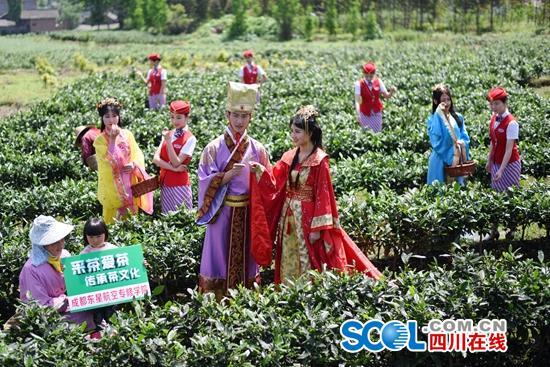 四川在線消息(四川在線記者 楊德)最美人間四月天,采茶賞花春色俏。28日,雅安蒙頂山的皇茶貢茶地里,一群穿著唐裝、空姐服——畢業(yè)于成都東星航空專修學(xué)院的空姐,和當?shù)氐牟柁r(nóng)進行了一次“親密接觸”,學(xué)采茶,感受茶文化的魅力。體驗勞動的艱辛,培養(yǎng)以后在飛行工作崗位上的抗壓力和忍耐力。