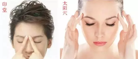 印堂穴,在前額,兩眉頭間的中點(diǎn)。太陽穴,在眉梢旁。
