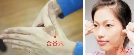 合谷位于雙手虎口的最高點(diǎn),下關(guān)在面部,耳朵前方,顴骨下方的凹陷處。