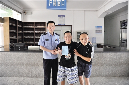 安排好一切后,6日一大早,龔小兵便開車來到小峰家附近,和胡仁明一起將小峰扶上車,隨即上路。一路上小峰非常興奮,而龔小兵卻眉頭緊鎖,因?yàn)閺闹貞c到渠縣臨巴派出所來回有400多公里,包括100多公里山路,一個(gè)急剎、一個(gè)轉(zhuǎn)彎都可能給小峰造成傷害!拔议_車的時(shí)候眼睛都不敢眨一下,生怕出問題!饼徯”f,好在一路順利,到臨巴派出所后只花了十幾分鐘就辦好了相關(guān)手續(xù)。