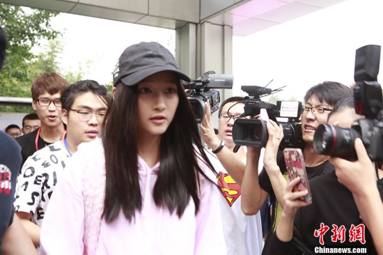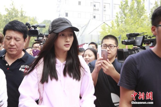 9月4日,“國民閨女”關曉彤身穿一襲粉色帽衫,現(xiàn)身北京電影學院報到,遭媒體圍堵。 中新網(wǎng)記者 翟璐 攝