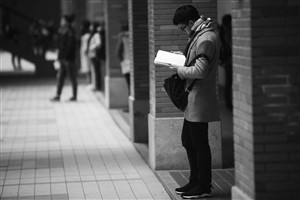 進(jìn)考場(chǎng)前一位考生在看學(xué)習(xí)資料