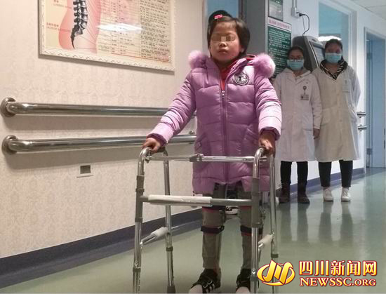今日上午10點,琴琴正在醫(yī)院過道里練習(xí)走路。他的主治醫(yī)生趙亮告訴四川新聞網(wǎng)記者,琴琴能恢復(fù)到站起來,這也是出乎所有醫(yī)生意料的。因為這和琴琴剛剛來醫(yī)院時的狀況相比反差很大。在醫(yī)院接受治療的半年多時間,琴琴做過很多次手術(shù),也熬過了很多次感染的風(fēng)險,看著琴琴康復(fù),醫(yī)生們都覺得很開心。而琴琴所在的脊柱康復(fù)科護(hù)士雷倩的心情有些矛盾,一方面為琴琴出院高興,另一方面心里還有些舍不得這個可愛的孩子。