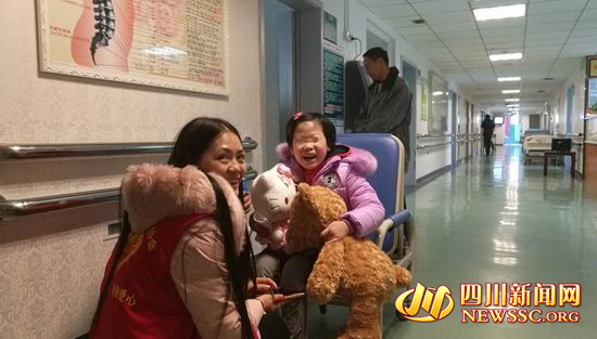 據(jù)成都市殘疾人福利基金會秘書長陳剛介紹,琴琴是一名棄嬰。2007年9月的一天,安岳縣龍臺鎮(zhèn)塔灣村人唐定兵在路邊撿回一個女嬰,取名琴琴。直到孩子兩歲多時,夫妻二人發(fā)現(xiàn)琴琴還是大小便失禁,于是帶到好幾家醫(yī)院檢查,得知孩子是硬脊膜病變,很可能這輩子都行動不便。今年初,琴琴被養(yǎng)父送到醫(yī)院進(jìn)行手術(shù)治療,前后花去了上萬元,但效果卻不太理想。琴琴養(yǎng)母因為承受不住壓力,離家出走,再也沒有回來。唐定兵只能留在老家照顧女兒,今年4月的一天晚上,唐定兵卻出了車禍,出院后也臥病在床不能動,因此就沒有辦法好好照顧琴琴。