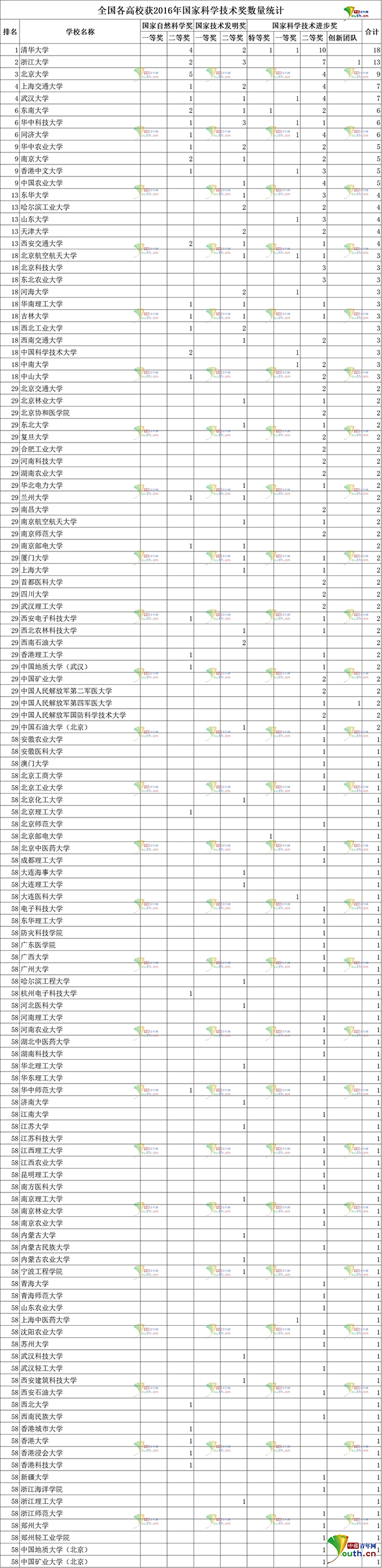 附1:全國各高校獲2016年國家科學(xué)技術(shù)獎數(shù)量統(tǒng)計