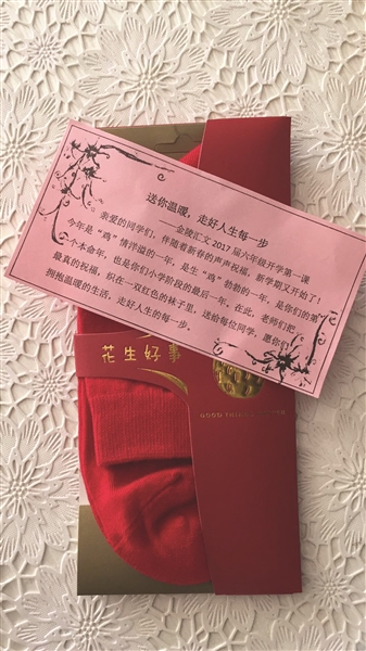 小學(xué)六年級的孩子馬上就面臨小升初,細(xì)心的老師發(fā)現(xiàn),今年也是很多學(xué)生的本命年,于是驚喜來了——金陵匯文學(xué)校小學(xué)部六(5)班的三位老師,給每個孩子買了紅襪子,讓家長們十分驚喜。